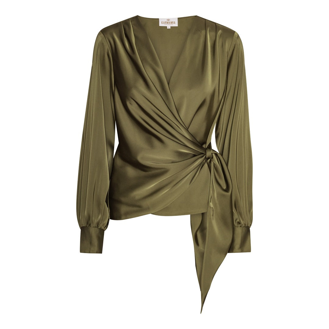 Femininity and style embody the Ines Blouse. The neckline drapes softly around the bodice, and a satin ribbon gathers at the waist to highlight your curves. The Ines Blouse comes with long sleeves finished with a wide cuff round out the blouse.