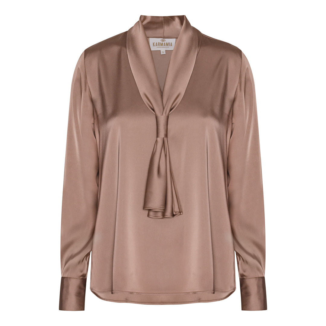 Beautiful sailor inspired low V-neck blouse with bow effect in the front.