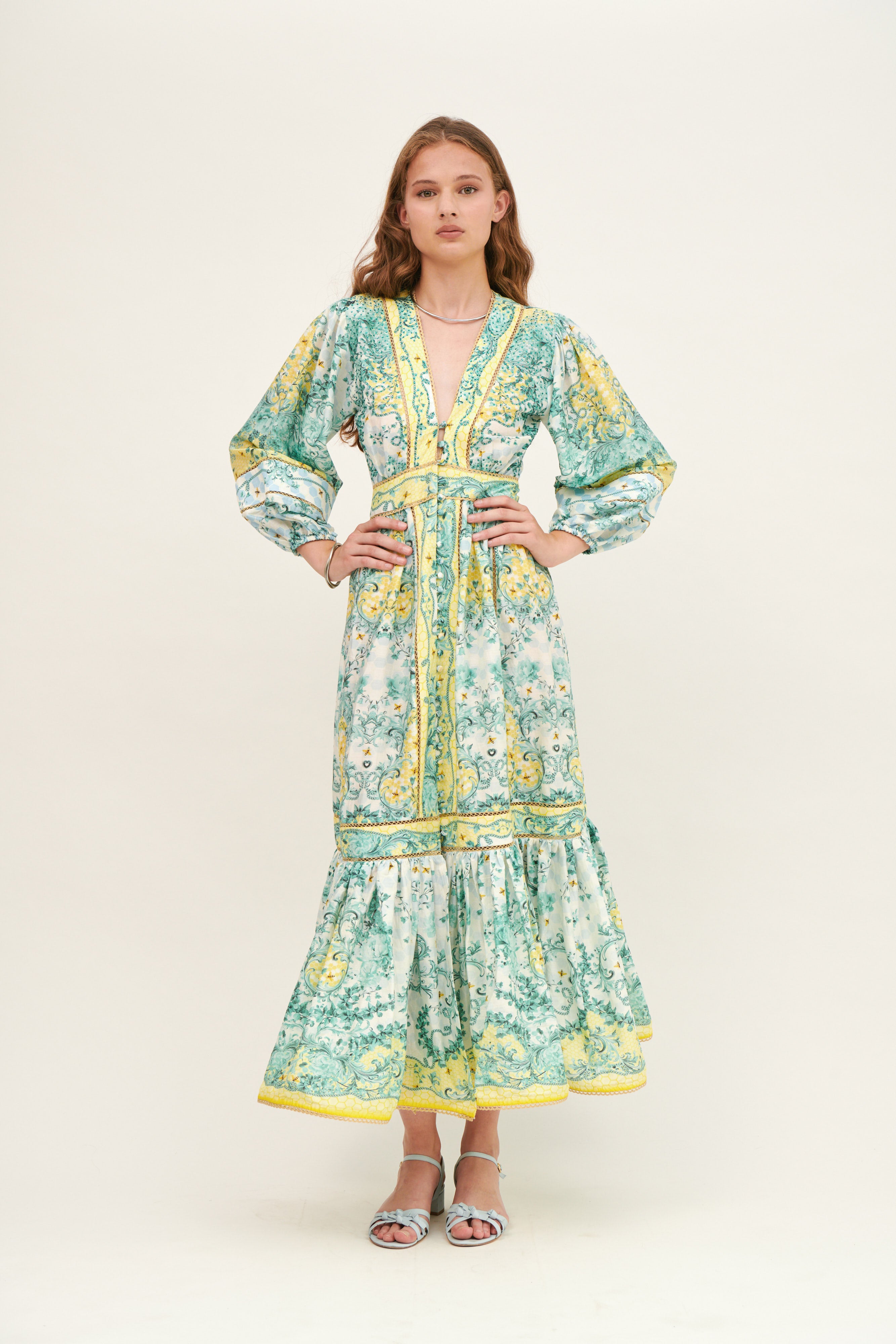 Expertly crafted from luxurious Chanderi fabric, the Long Dress Poesia is the perfect blend of elegance and comfort. With long sleeves providing extra coverage, this dress seamlessly transitions from day to night. Elevate your wardrobe with this timeless piece.