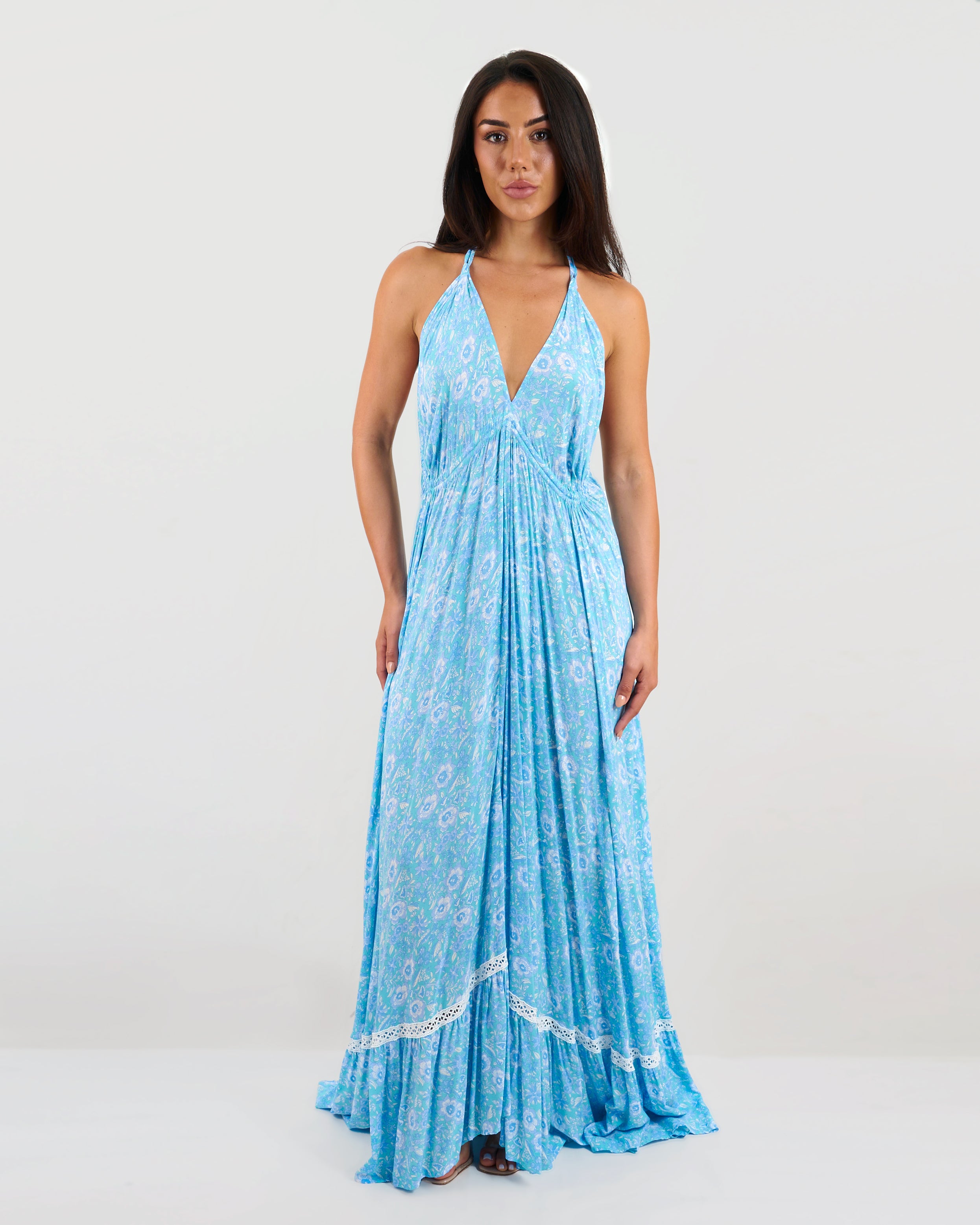 It is glamorous and bohemian piece, its openwork back and floral print gives it a romantic and chic style.