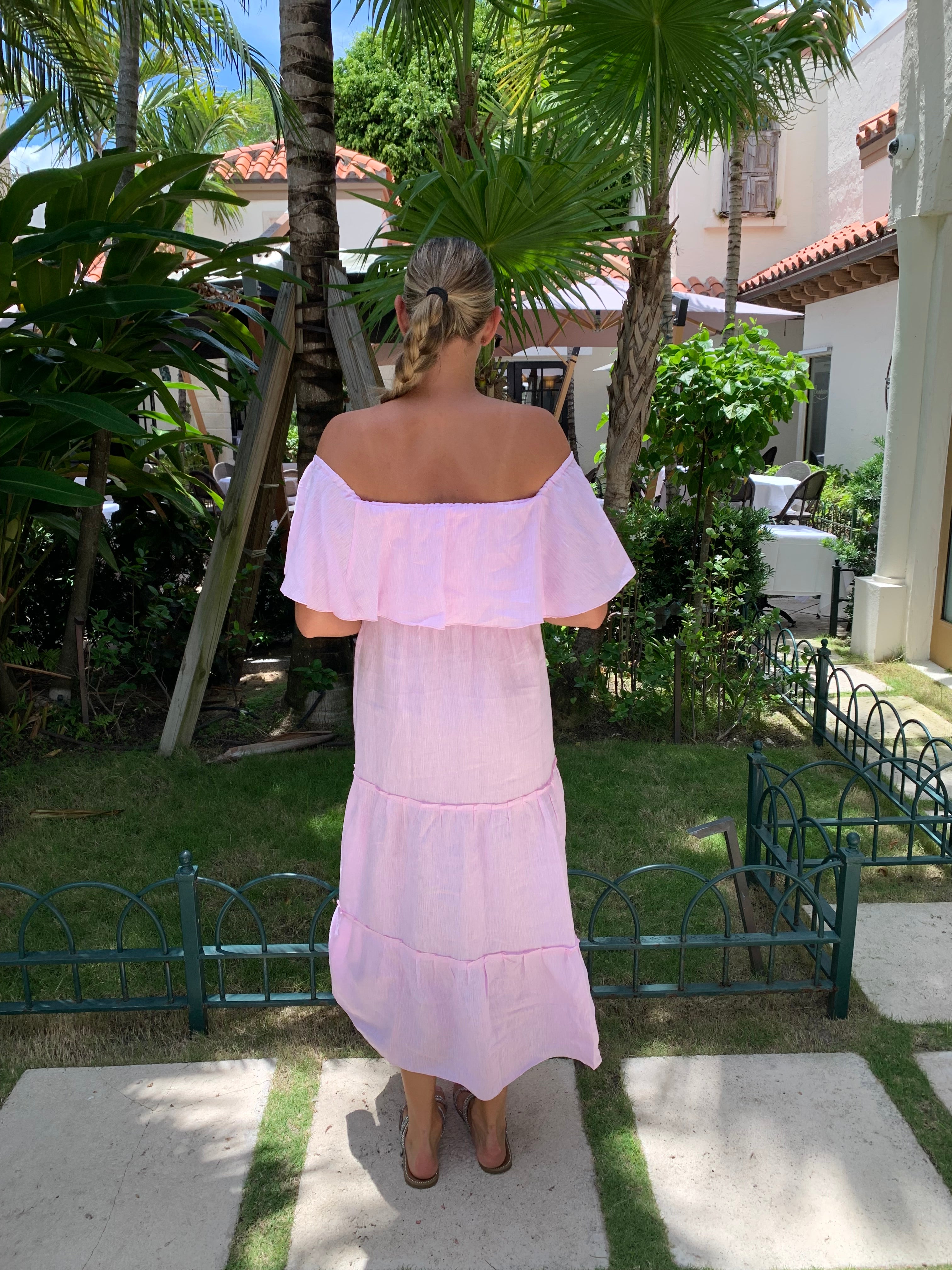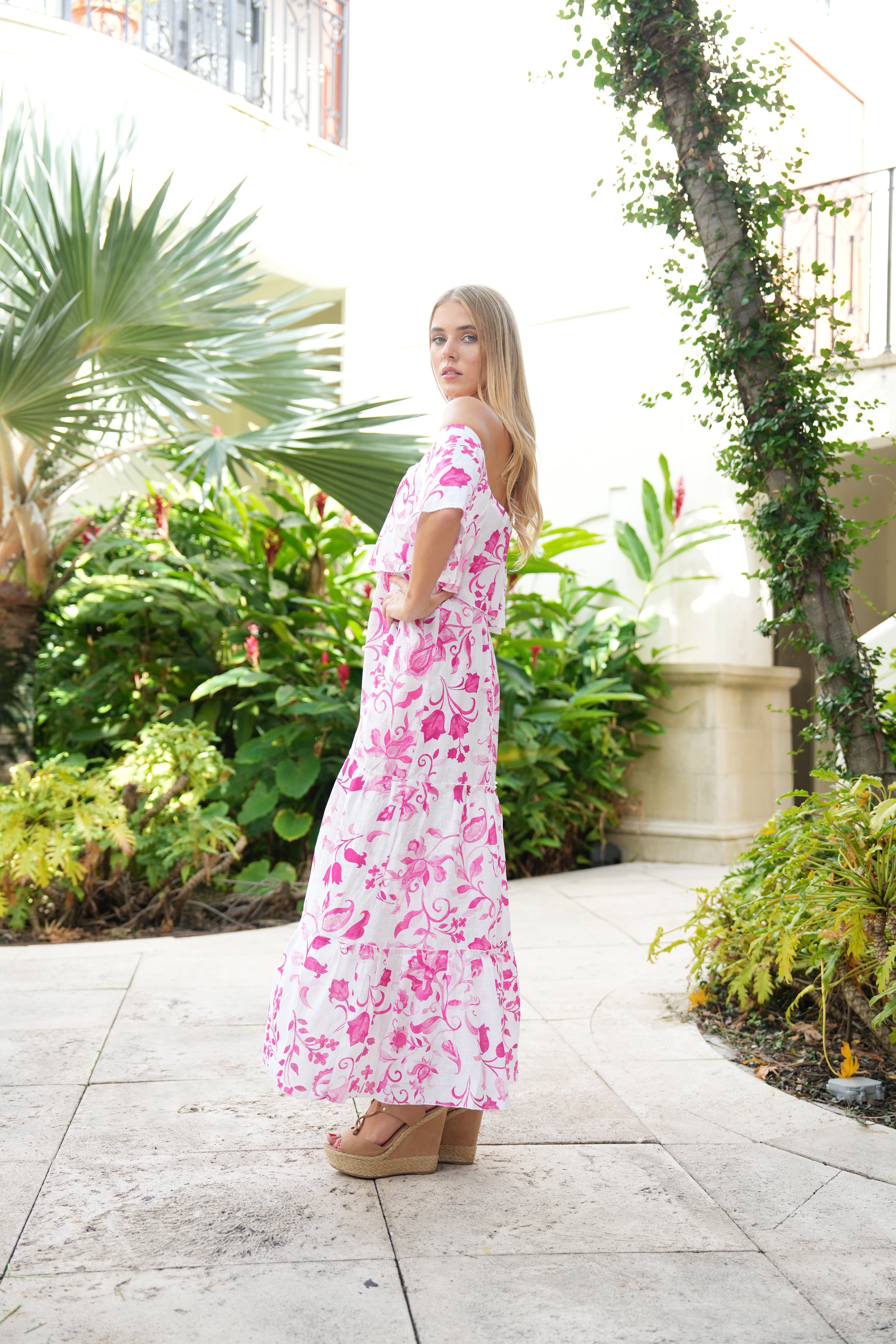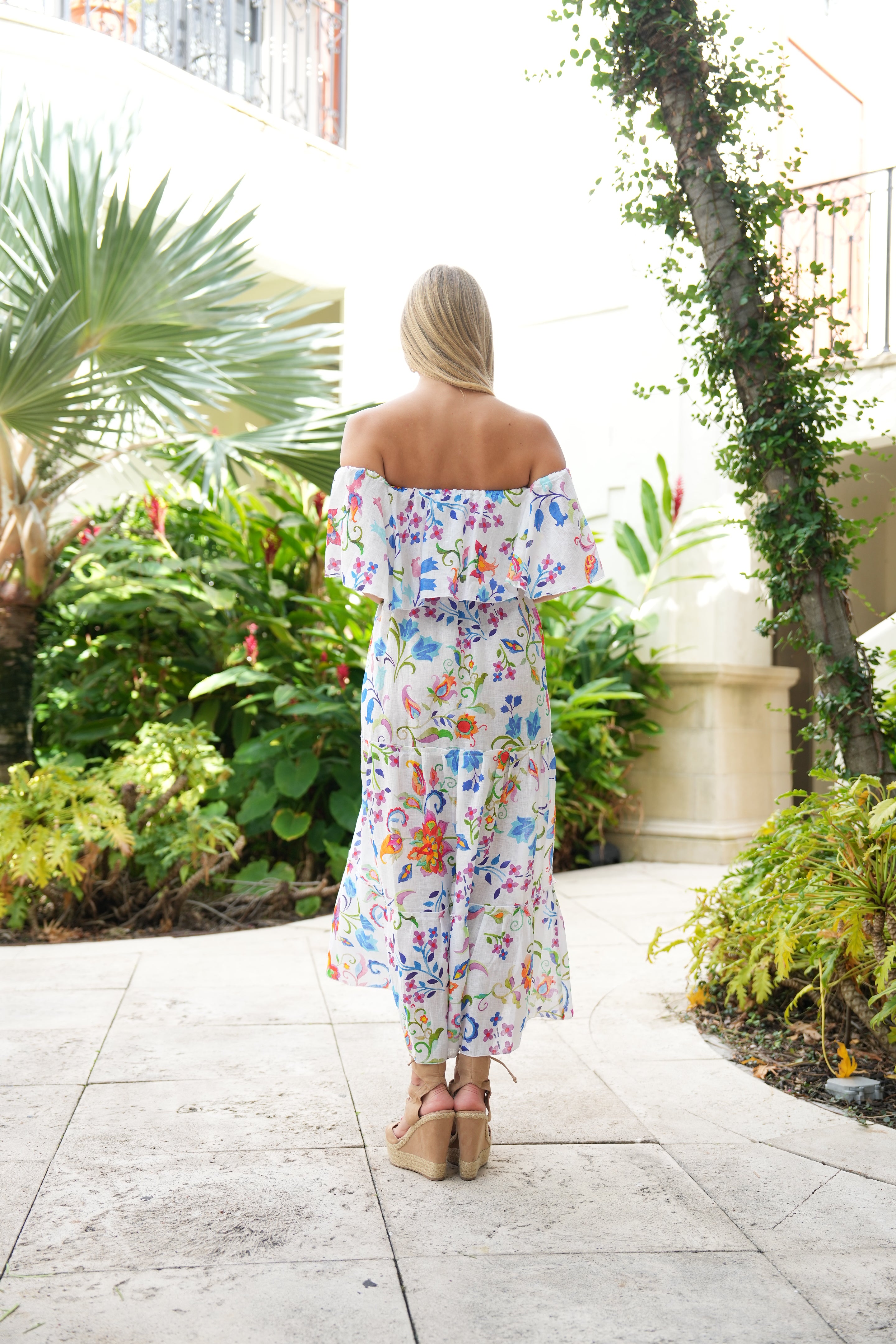 Our Balze Orlini dress is versatile and glamorous. It has richly detailed prints, colors, and romantic silhouettes for a timeless, fresh and comfortable look. Details like the puff sleeves, oversized tired skirt, and off-the-shoulder neckline make this dress perfect for outdoor dinners. Glam it up with our Schutz Thea Block Gold sandals and our gold Gas Bijoux.