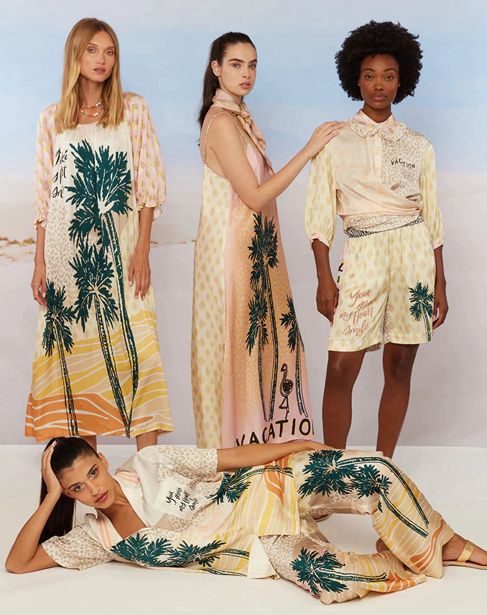 Easy breezy printed camisole dress with thin spaghetti straps and a small V neck, this mix print dress has a fun “Vacation Forever Slogan” that gives it a graphic twist. Wear it with our .matching accessories for a complete holiday look.