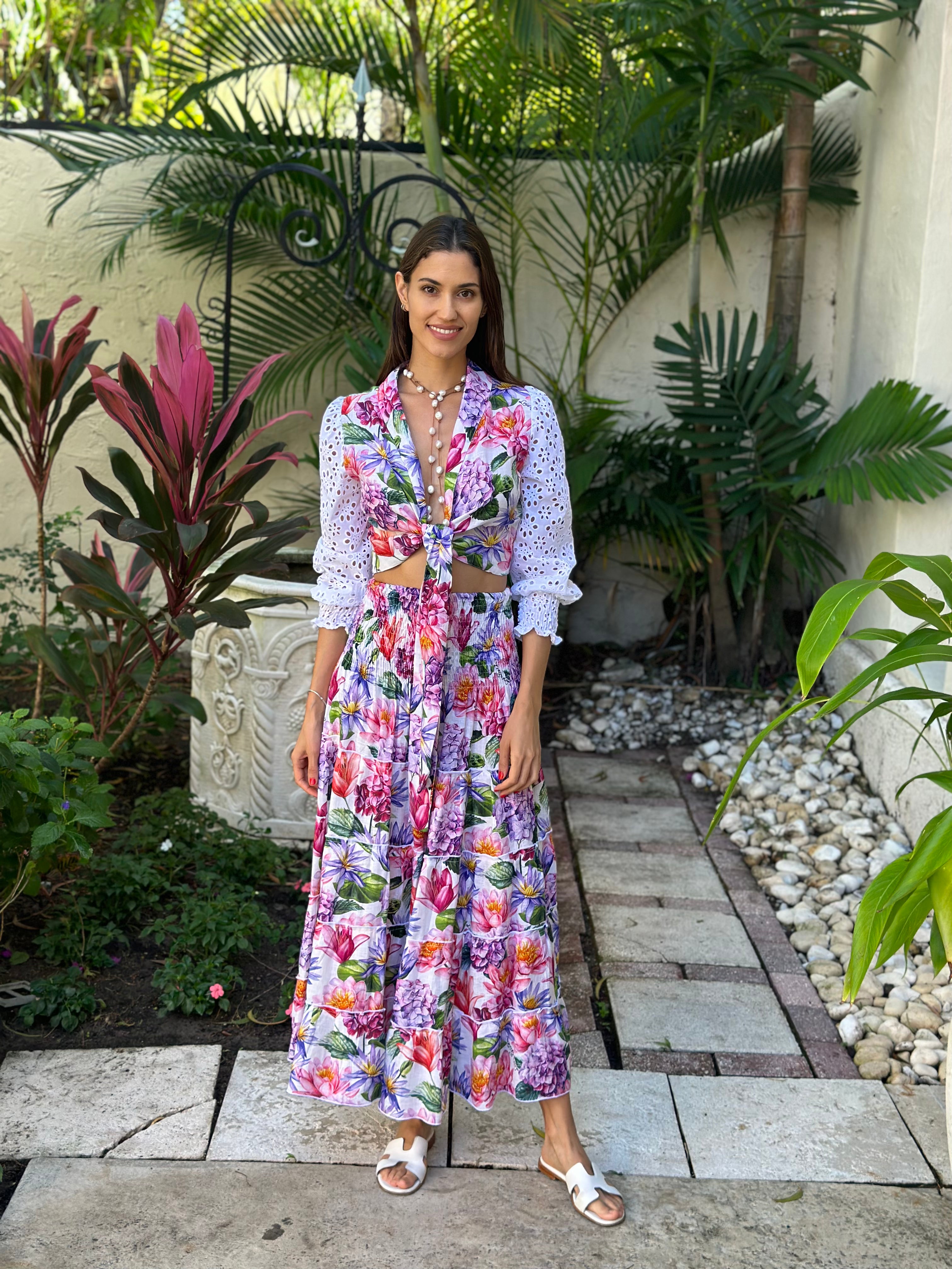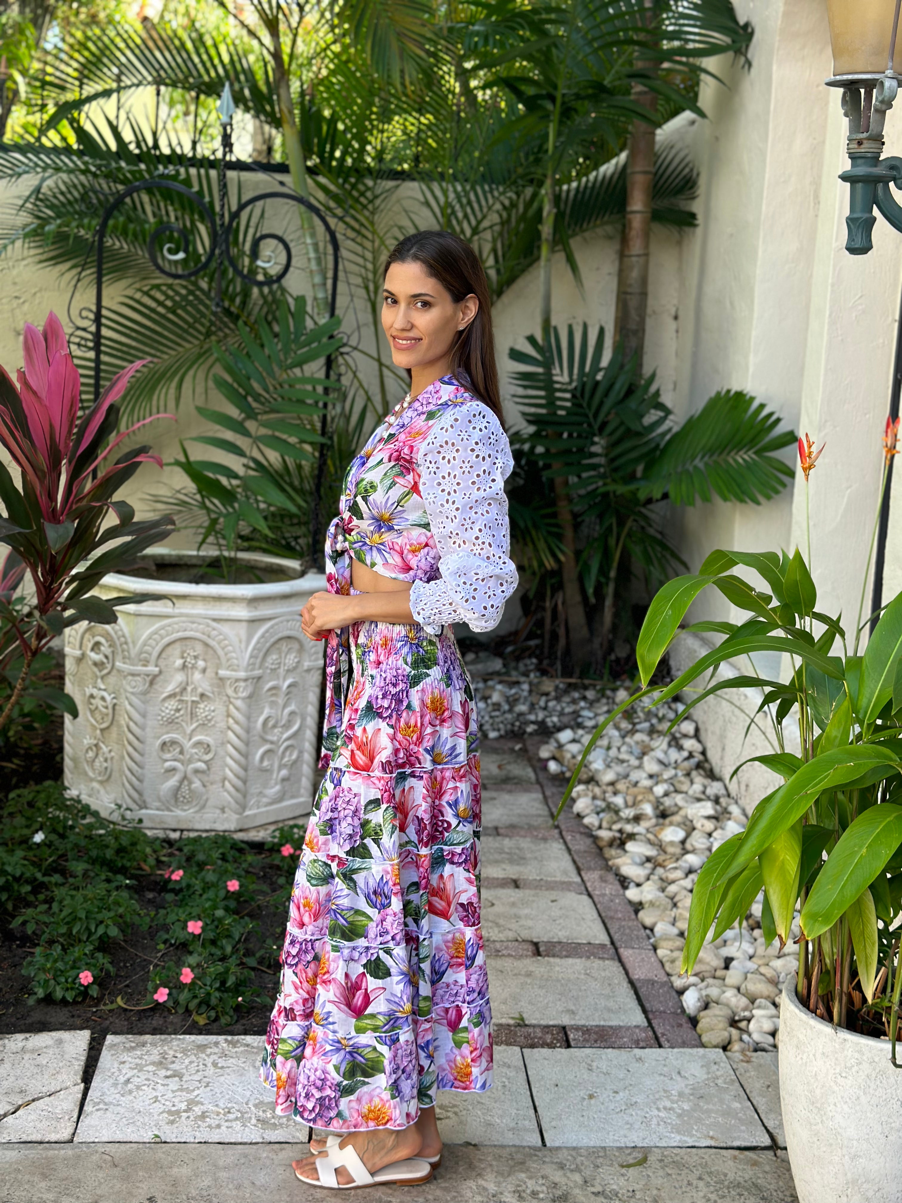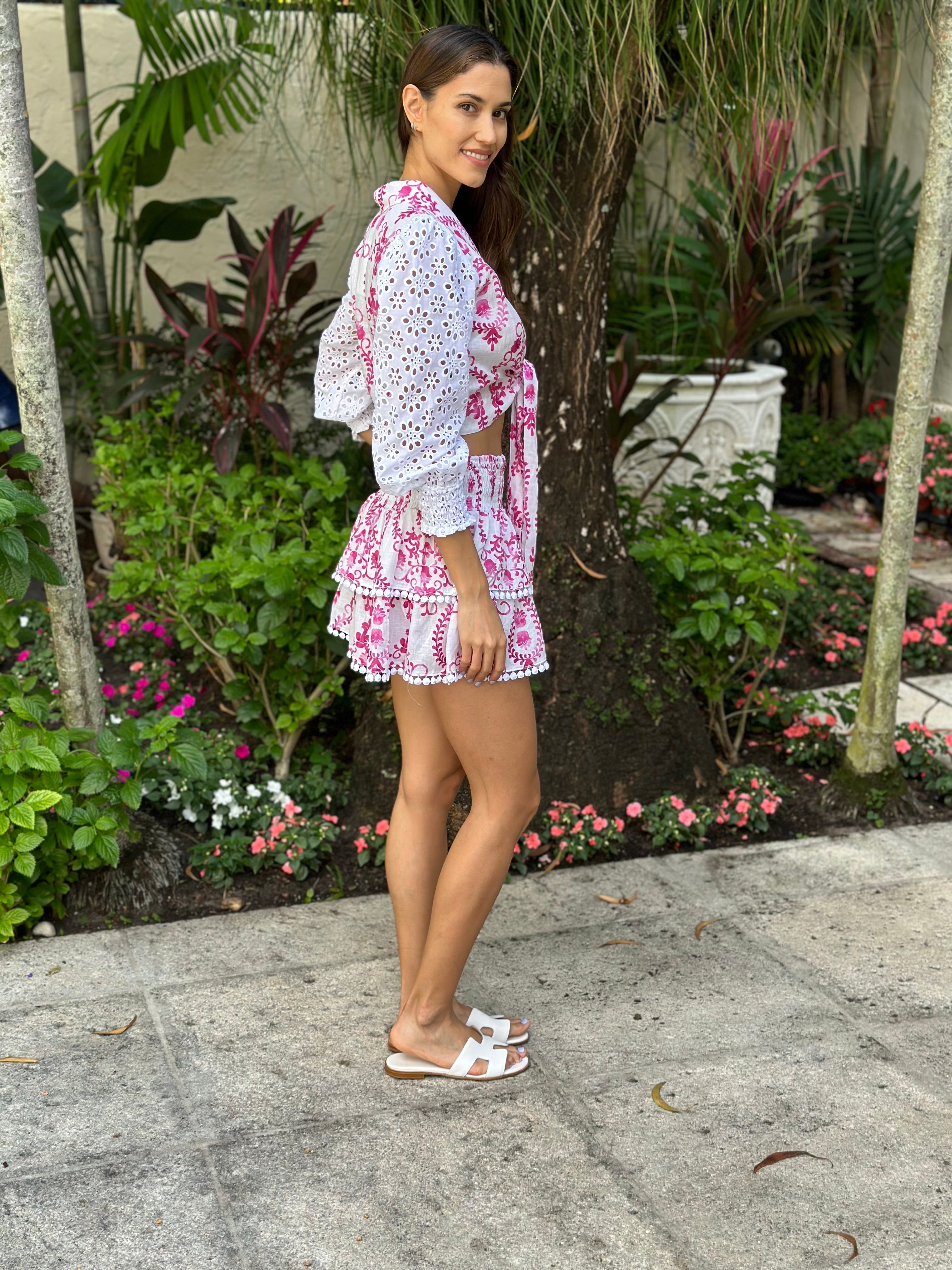 This top with white lace embroidery sleeves matches perfectly with white pants, Hedy long skirt, Mini skirt or Mandala pant.