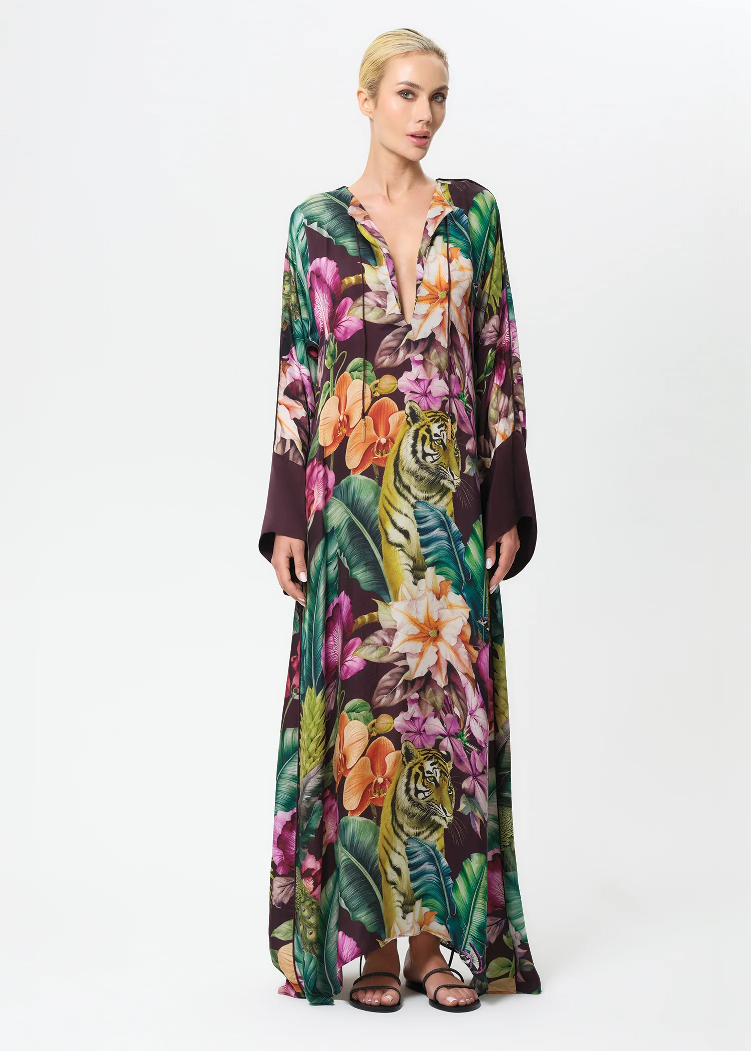 The Farrah Print, inspired by Farrah Fawcett’s wild beauty, is a unique jungle motif alive with tigers, peacocks, and lush jungle flora. Capturing the free-spirited glamour of the 1970s, Farrah embodies Calypso’s inspiration, a modern twist on St. Tropez in its golden age.